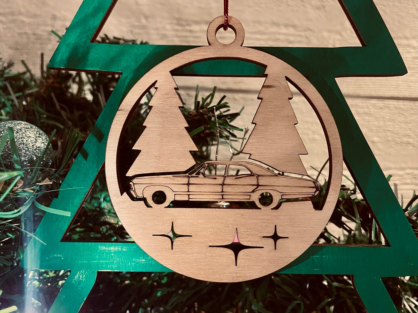 Tillverkade i 3mm trä, 80mm i diameter, levereras med upphängnings-snöre.