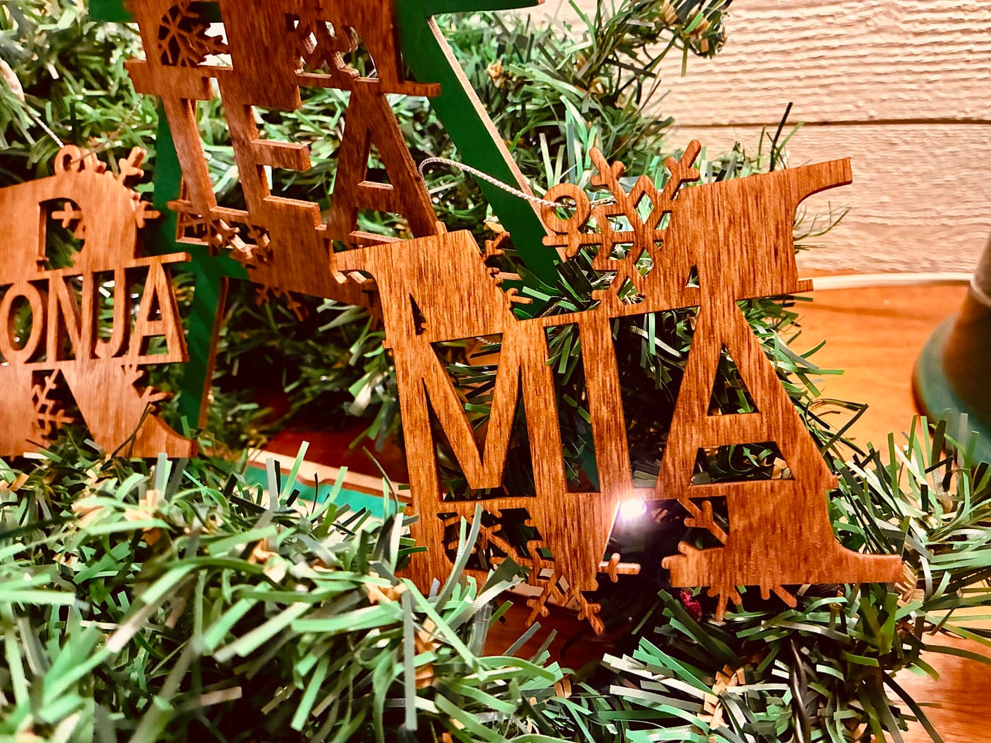 Gör julgranen personlig med eleganta julhänge med valfritt namn.