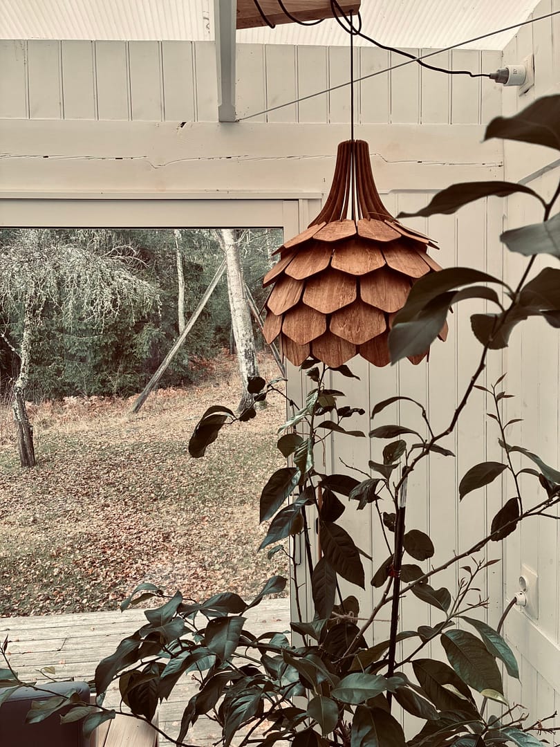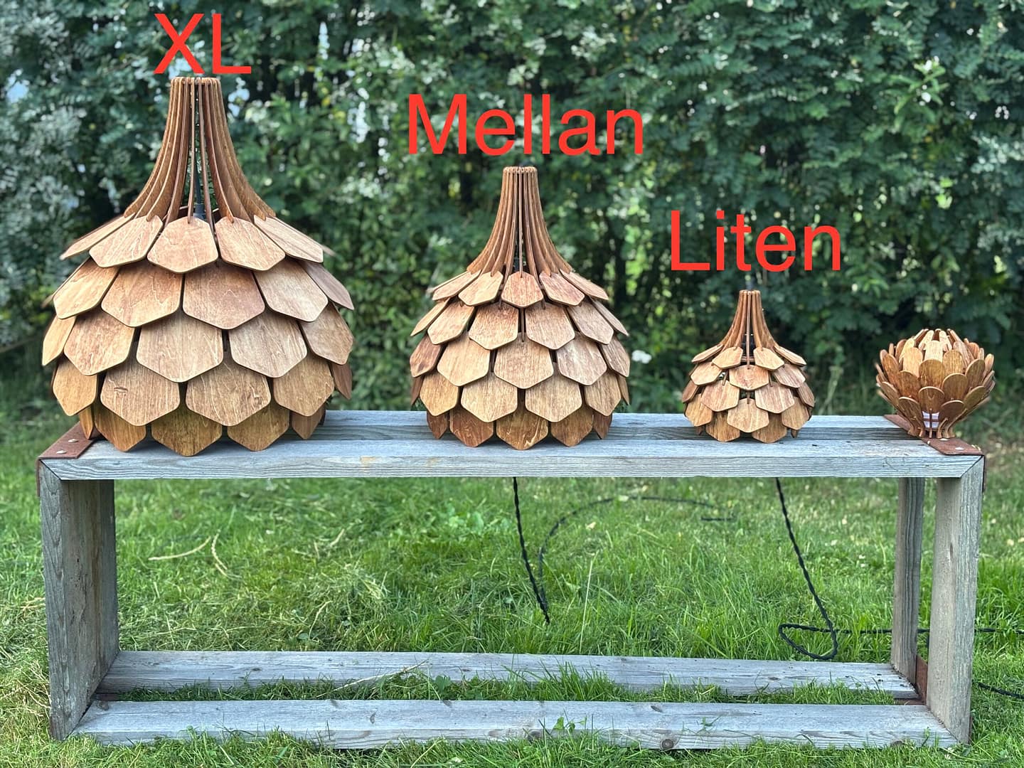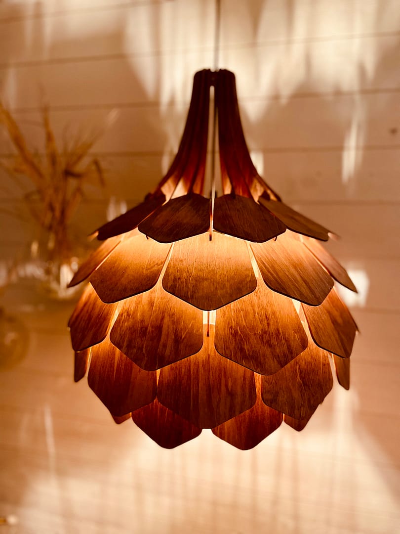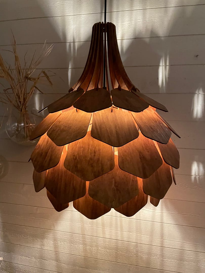 Vacker lampa som ger ett mycket skönt och behagligt sken. Går att välja på ljus oljad yta, svart-bets eller brun-bets, meddela vilken färg ni önskar i beställningen.