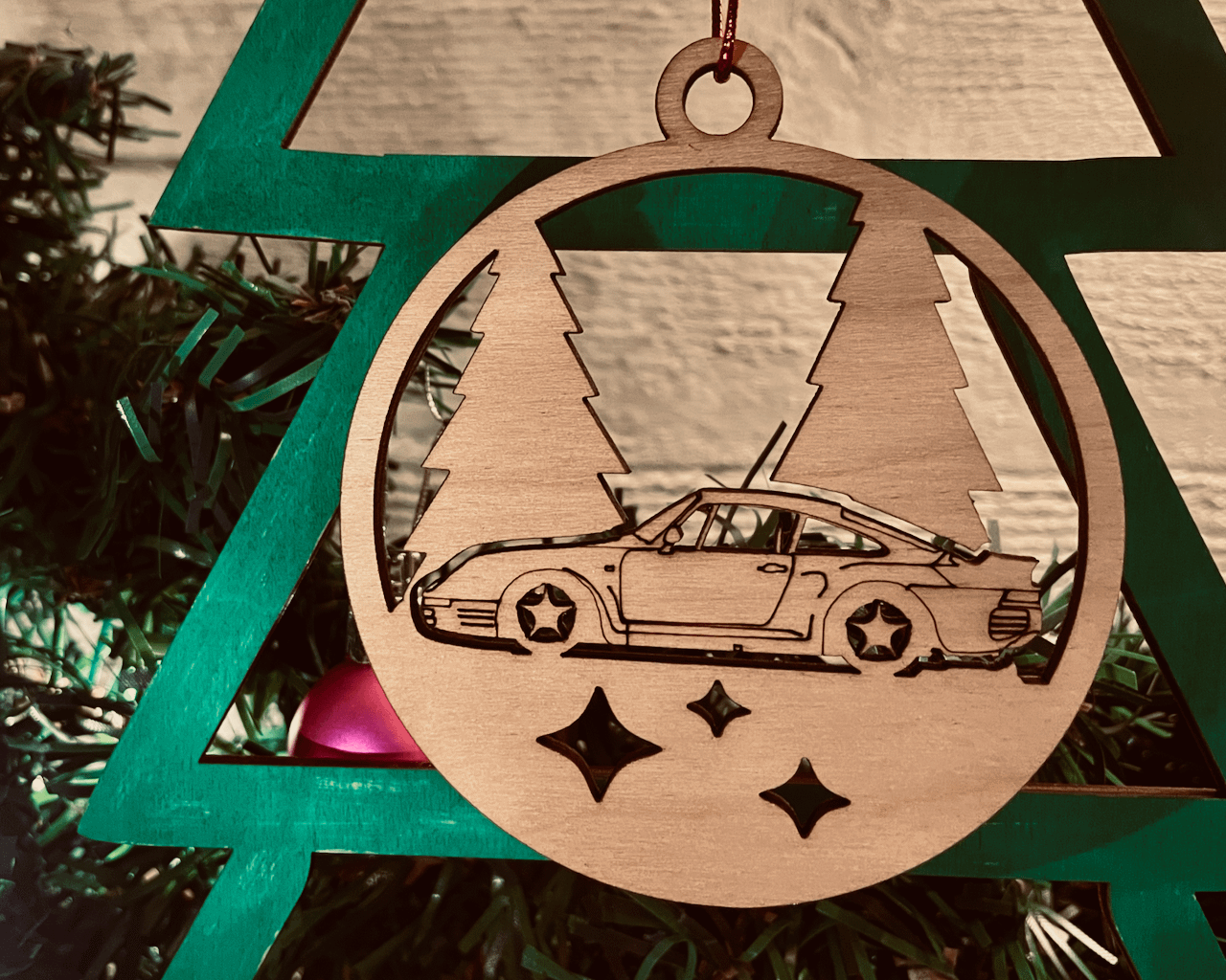 Tillverkade i 3mm trä, 80mm i diameter, levereras med rött upphängnings-snöre.