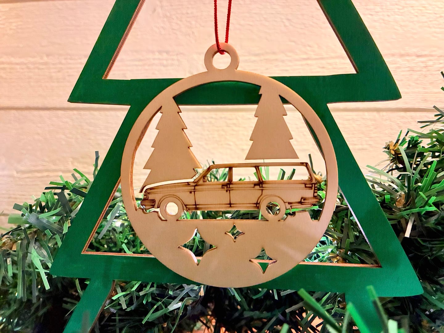 Tillverkad i 3mm trä, 80mm i diameter, levereras med  upphängnings-snöre.